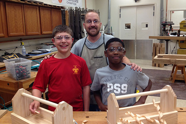 The primary goals of Woodworking 101 are to expose children to working with their hands, instill in them a respect for the trades, and give them skills they can use for the rest of their lives. Secondary goals are to create safe and effective work habits, instill an appreciation for tools, and give basic instruction in the principles, techniques, and history of woodworking.